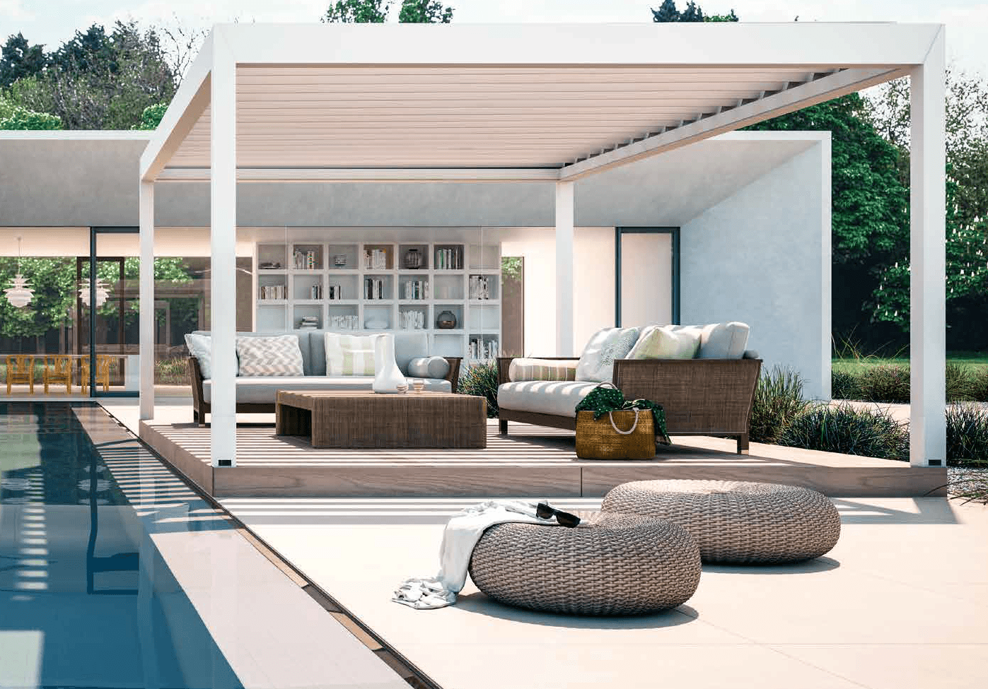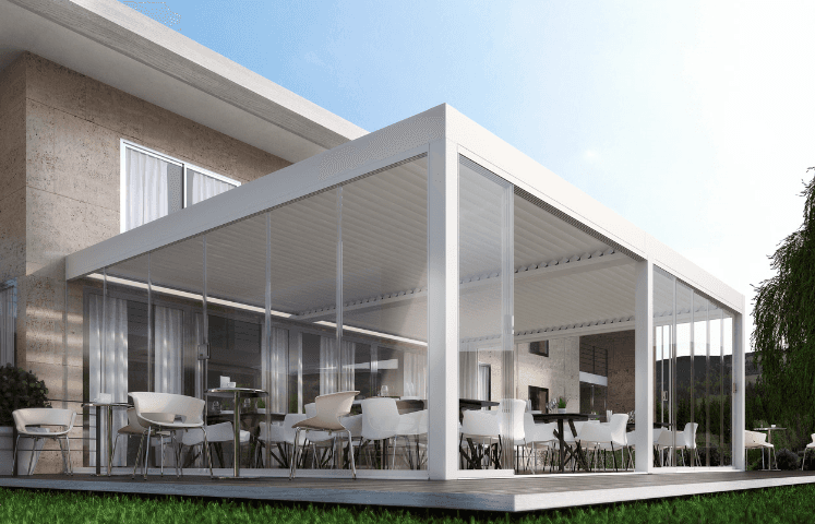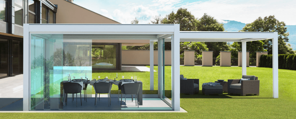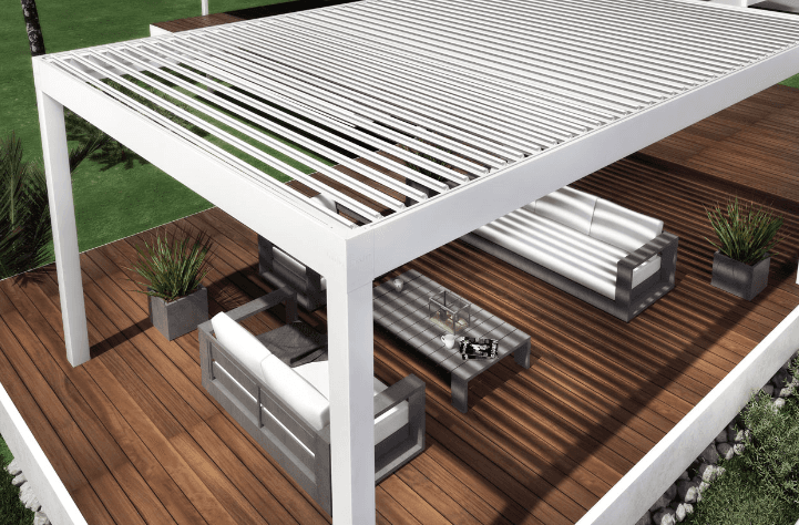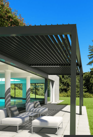 Unsere Pergolen mit Lamellendach sind sehr elegant und sie sind fuer jeden Kontext geeignet: fuer moderne als auch klassische Haeuser.